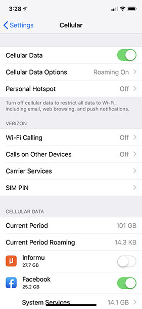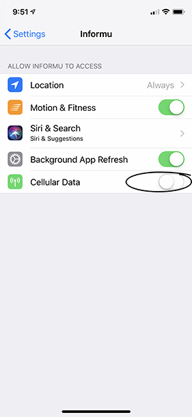 It has now been reported by two of our backers that the iOS app has used over 25GB of their cellular data. Please disable cellular data on the Informu app immediately so that you don't risk overage charges on your data plan.