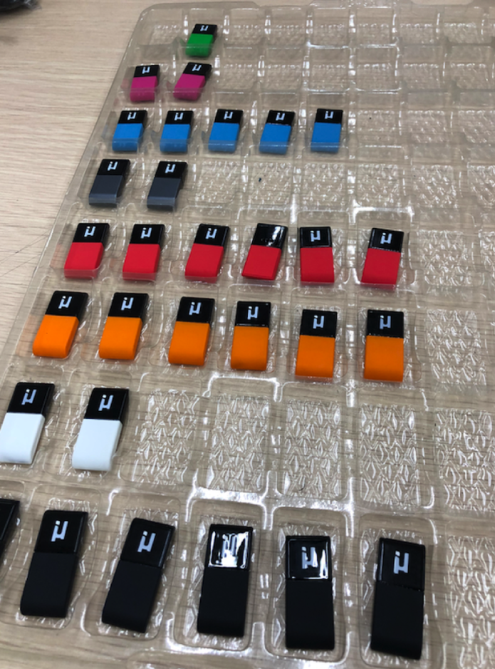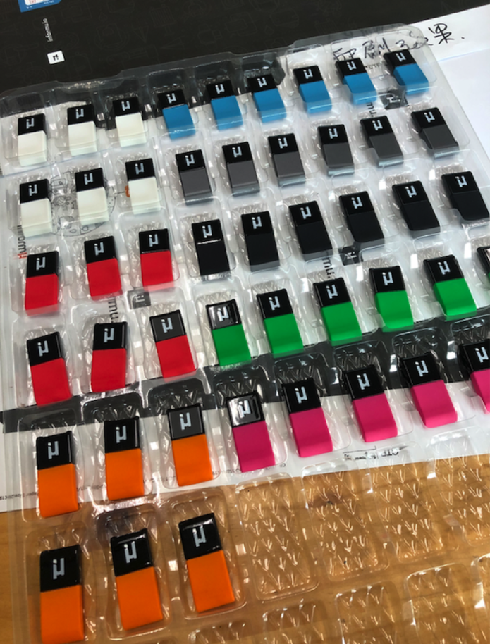We produced 800 units of Mu tag plastic parts, shipped them to the spray paint factory, had them redo the decoration process, then ship back the painted plastic parts to our assembly factory.