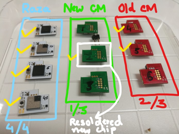 The CM shipped a few of the problematic PCBs from China that we are now testing. We also shipped some working PCBs to our CM so they could also make some comparisons of their own. They tried X Ray testing to figure out solder shorts, but there didn’t seem to be any. We tried programming the assembled boards ourselves which did not work. This verifies that it’s a hardware issue. Raza is now diagnosing the PCBs to help find a resolution to this problem. We found that the units which don’t work don’t power up and they show some shorts and low resistance paths between some power pins internally. So, we have also contacted the chip manufacturer to verify soldering profiles and make sure the CM is following reflow guidelines to avoid any internal IC damage during assembly process. Sure, this setback is hard, but we are not here to give up! We will try everything we can to get this resolved this asap.